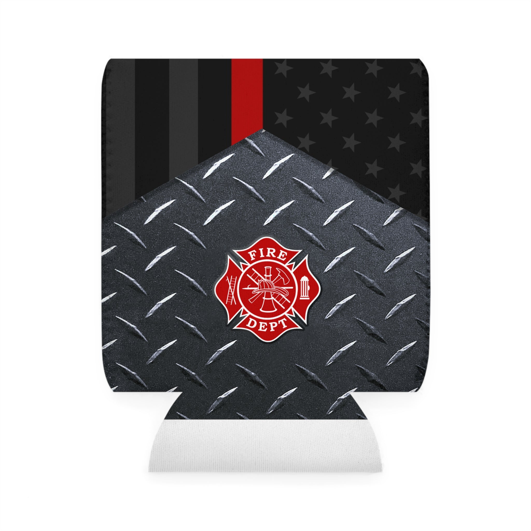 Firefighter Can Cooler Sleeve, Diamond Plate Print Insulated Beverage Holder