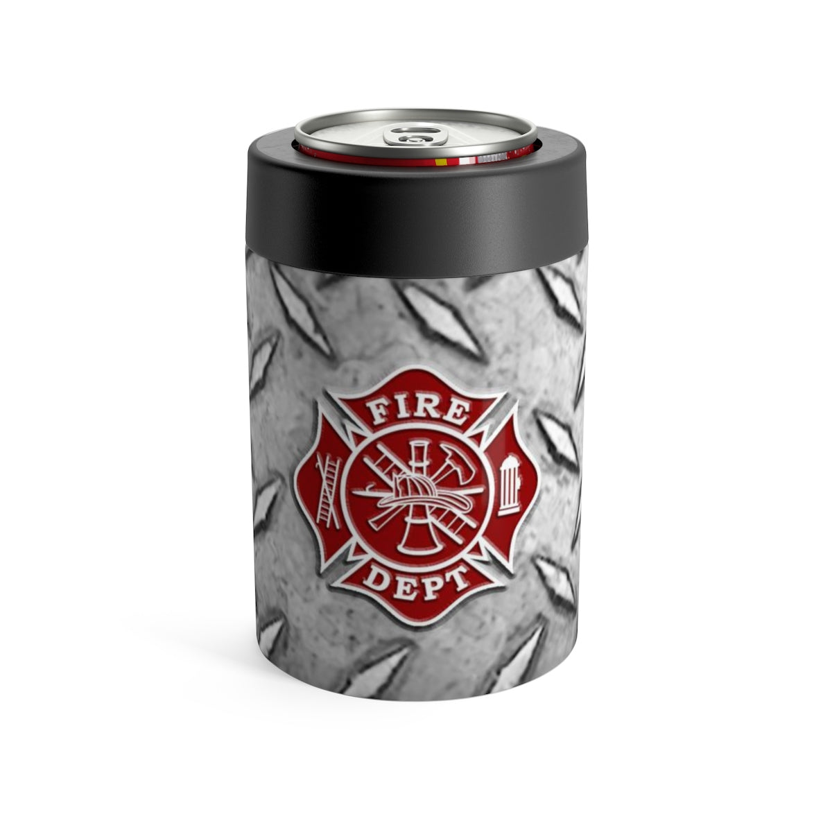 Firefighter Maltese Cross with Diamond Plate Print Can Holder