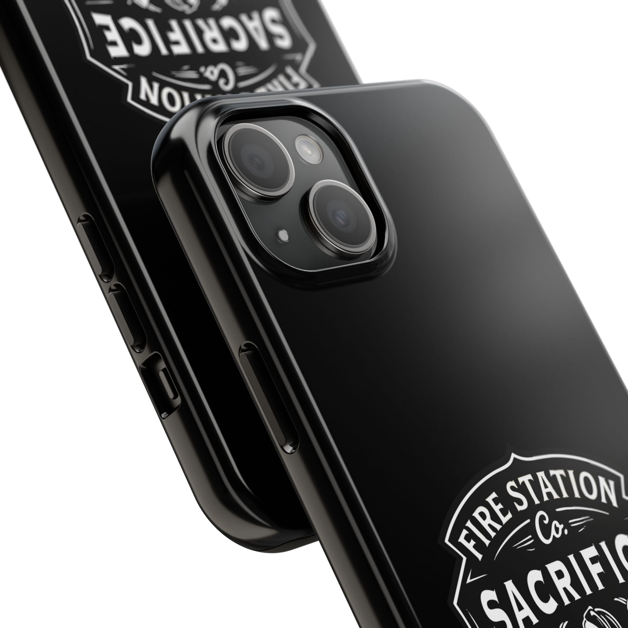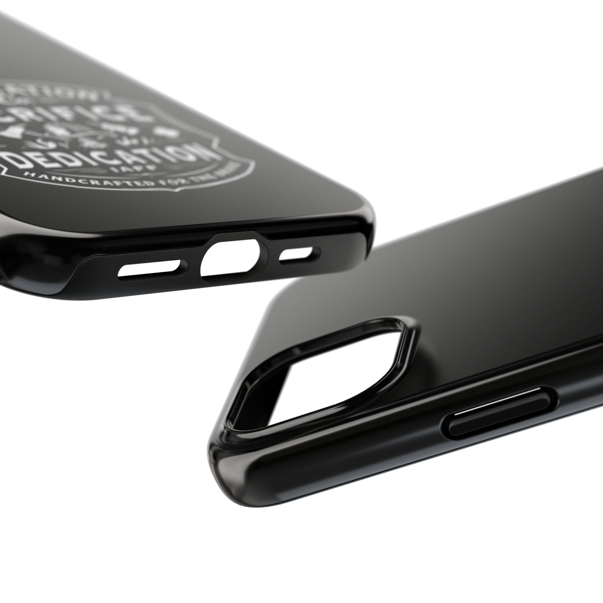 Fire Station Tough Phone Case — ‘Sacrifice & Dedication’ BW Badge Design
