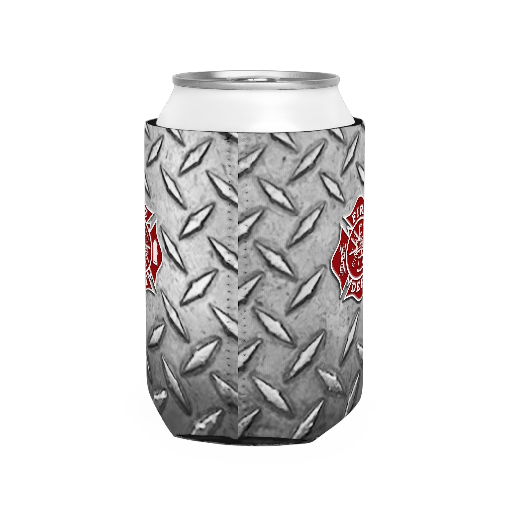 Firefighter Can Cooler Sleeve, Diamond Plate Print Insulated Beverage Holder