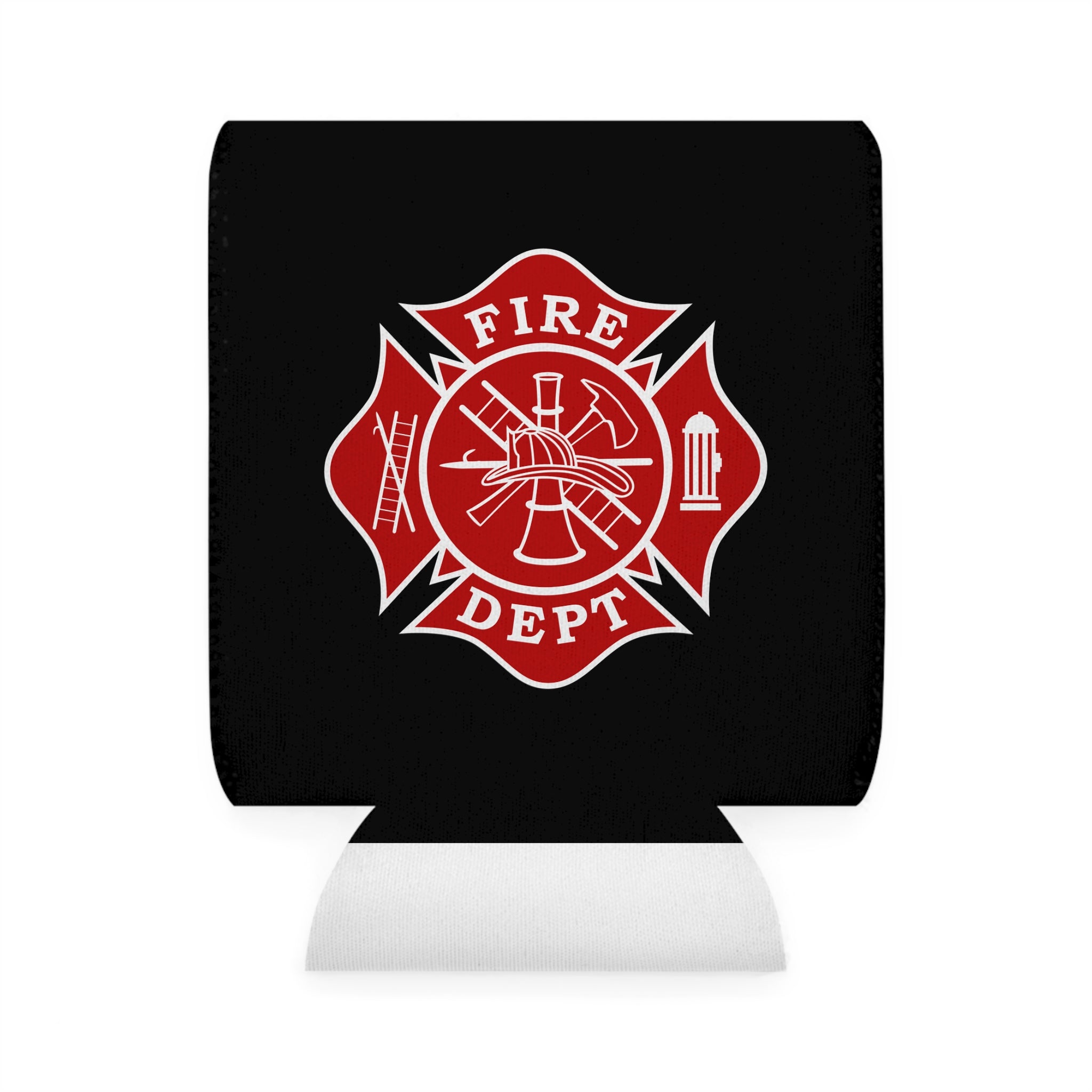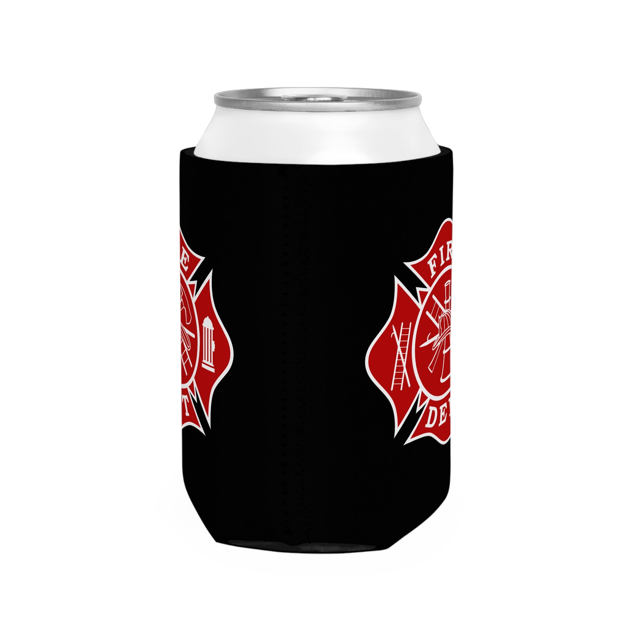 Firefighter Maltese Cross Can Cooler Sleeve, Black Insulated Beverage Holder