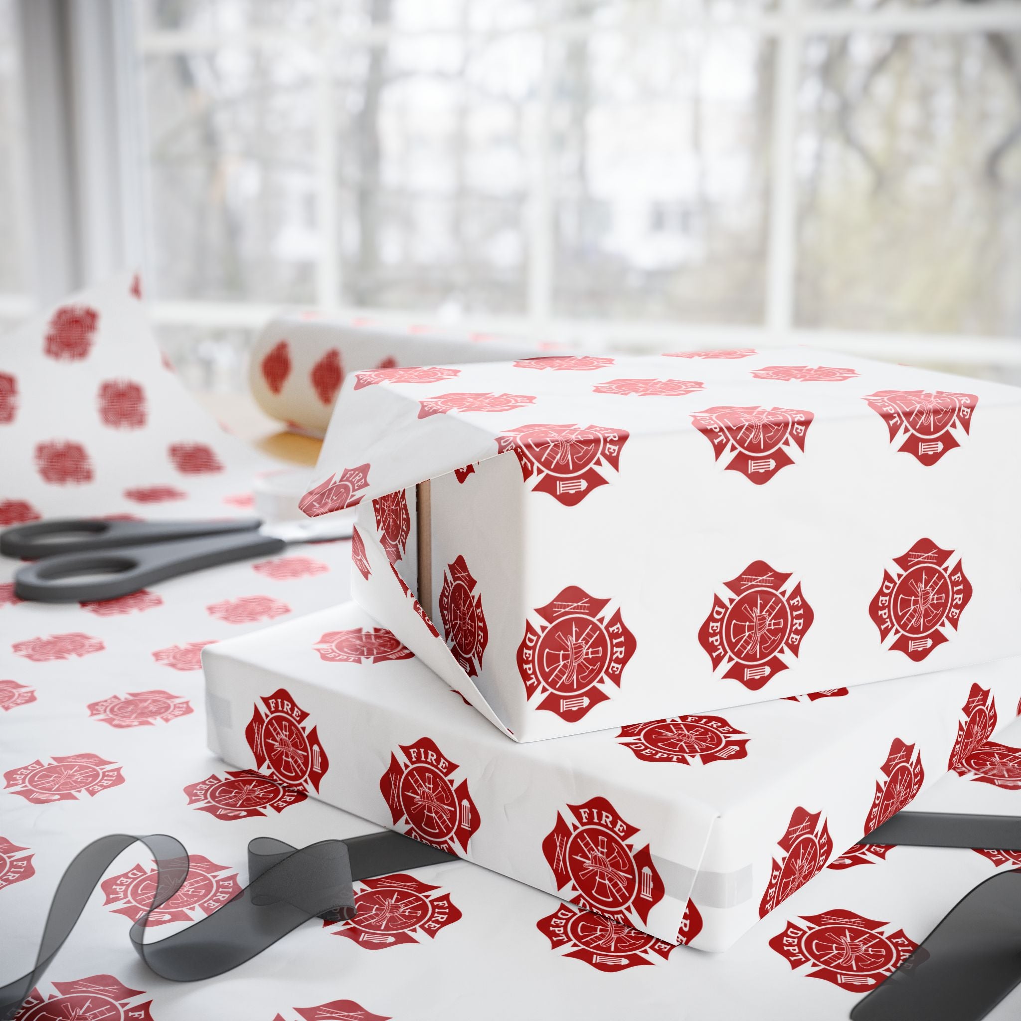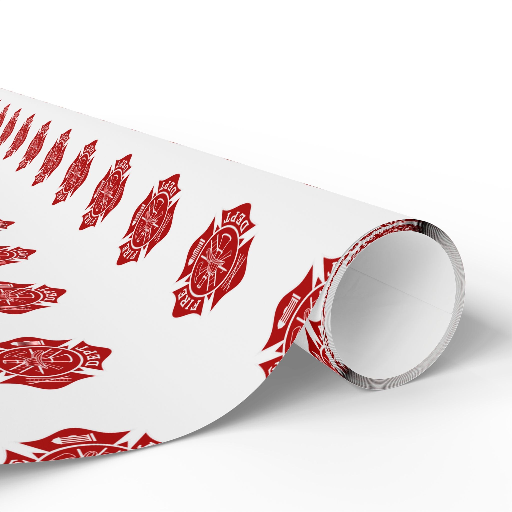 Firefighter Maltese Cross Wrapping Paper - Red & White Fire Department Logo Gift Wrap (Sheet/Roll)