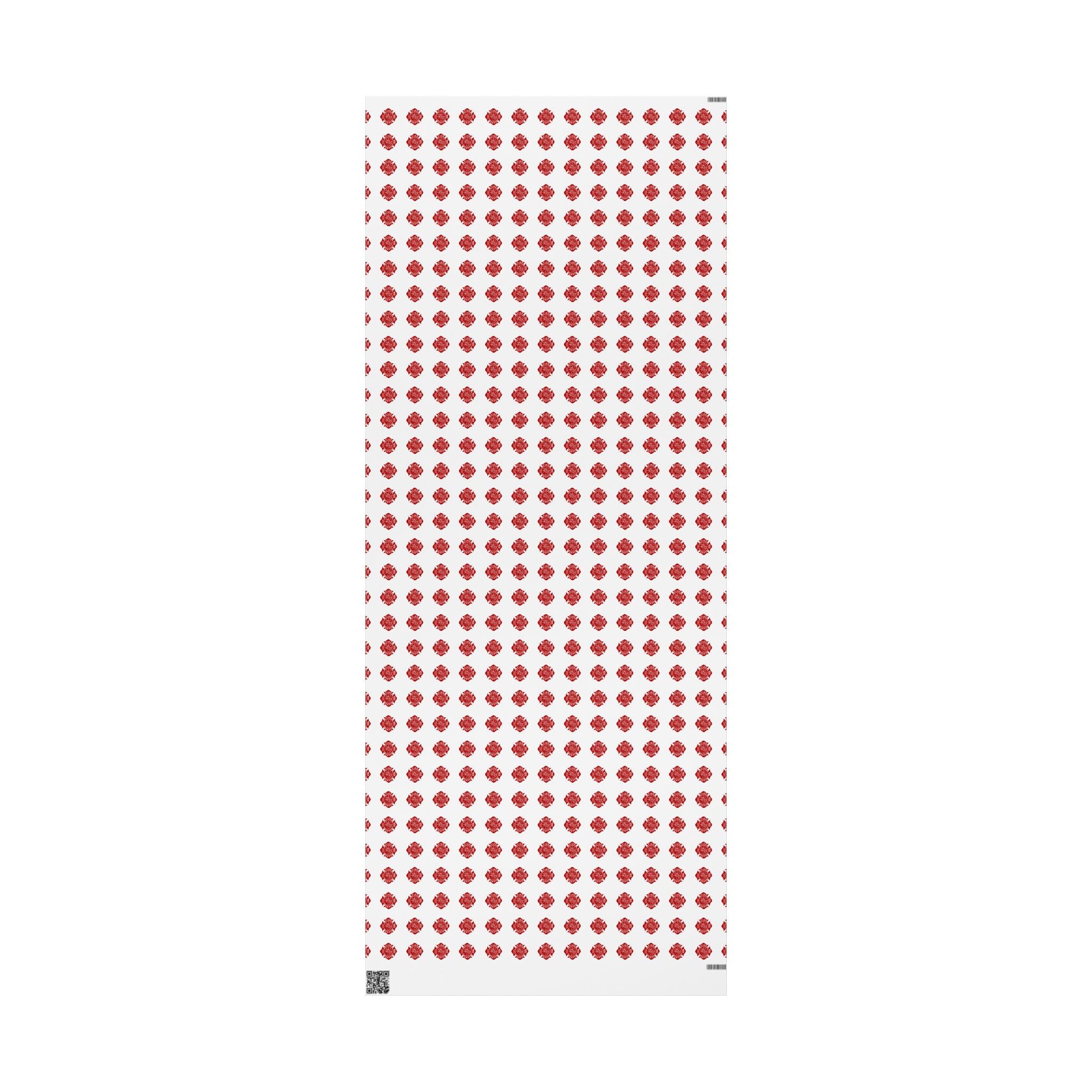 Hand-printed wrapping paper that brings a warm, handcrafted touch to holiday and everyday gifts. The bold red firefighter maltese cross repeats across a clean white background, giving presents a classic, slightly nostalgic look. The smooth 90gsm fine-art paper holds crisp creases and lays flat for neat folds. Choose glossy for a bright, festive sheen or matte for a softer, understated finish. Long rolls in three convenient lengths let you wrap small boxes or stretch out for larger parcels and special deliveries. Small production marks (white margins with a barcode/QR) appear at the roll edges, a reminder of the artisan printing process.