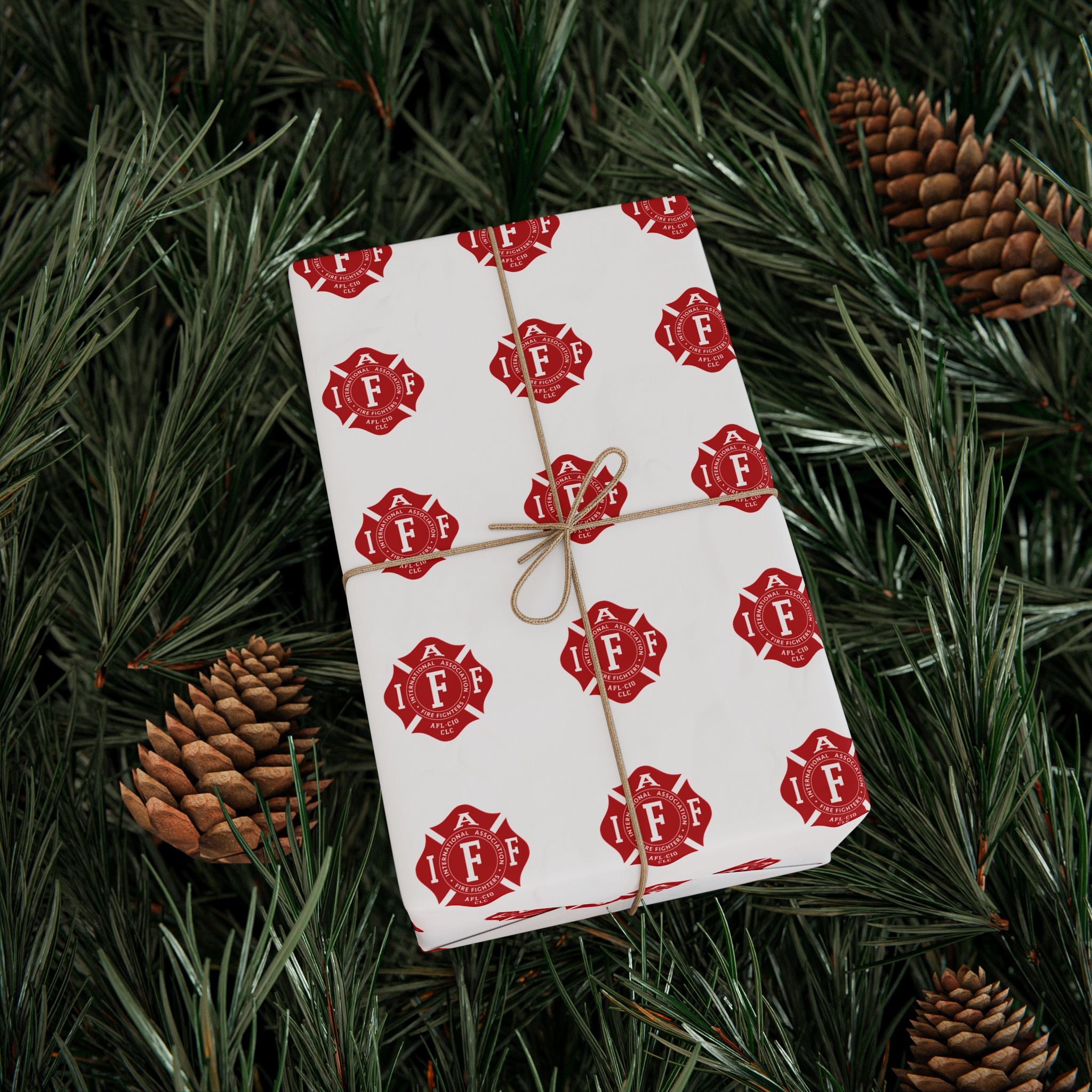 This wrapping paper brings a clean, handcrafted charm to gift-giving. A repeating red and white IAFF Maltese Cross has a vintage, letterpress feel—sits on bright white paper, giving packages a bold, graphic look without feeling fussy. The narrow, tall roll works beautifully for bottle gifts, long boxes, or trim ribbon-wrapped parcels. Choose glossy for a sharp, modern shine or matte for a soft, tactile finish that leans artisanal. Small white trim and a subtle QR code on the roll edge won’t affect your wrapped presentation but make unrolling and handling smooth and simple.