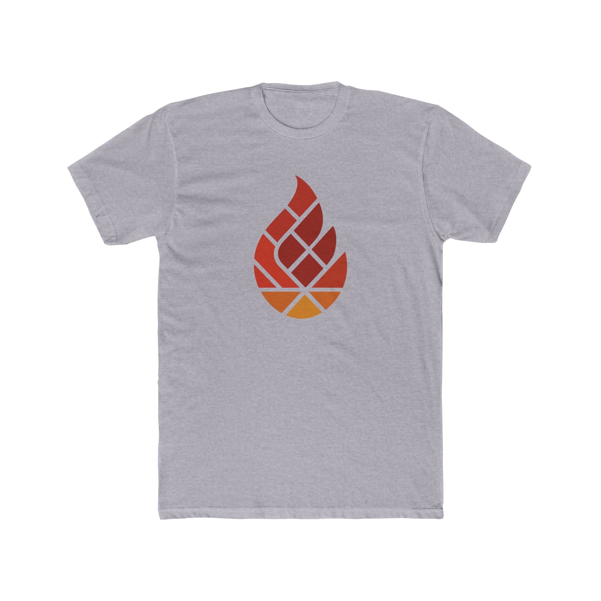 Bring the heat with style. This unisex cotton crew tee features a bold, stained-glass inspired flame design — a modern tribute to the fire service. The flame, built from abstract geometric blocks in fiery reds, ember oranges, and golden tones, represents both the danger firefighters face and the strength they carry to overcome it.